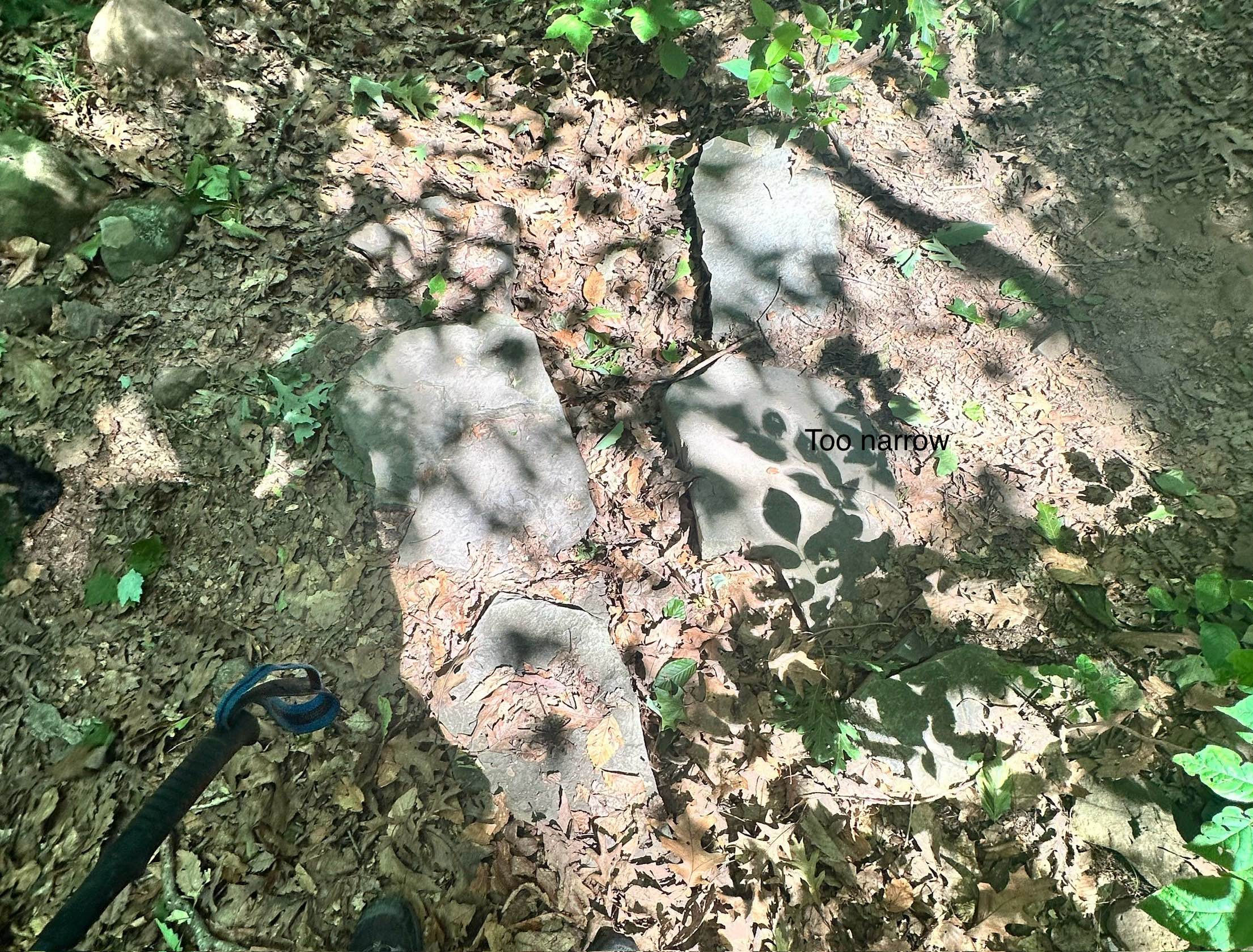 In the middle of the trail, it is helpful to have a rock placed that has a top face encouraging stepping on. (The cake method has all it rocks so.)