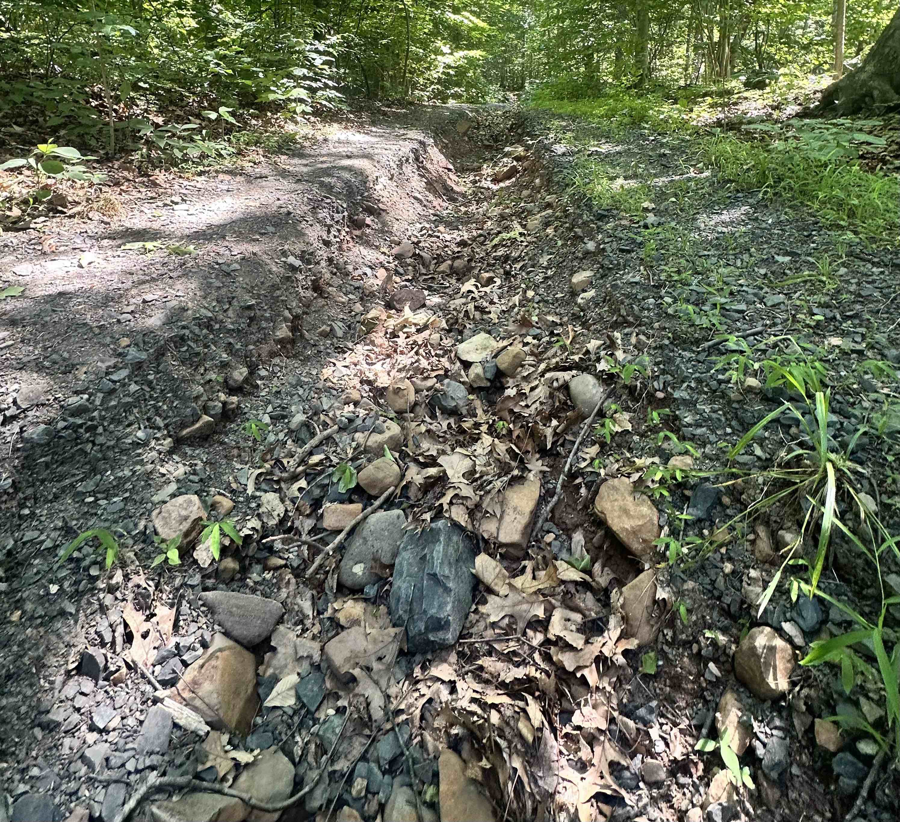 Water is the primary enemy of a trail system. Even in its most benign presence, when a trail is muddy, hikers tend to avoid the mud and widen the trail in the process. Even more damaging is when water is concentrated enough and flowing fast enough to cause erosion.