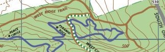 Figure 2.1: Reroute of Elmdale “lollipop” avoiding washed out region and giving access to pyramid-shaped rock.