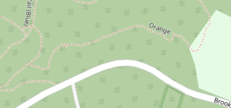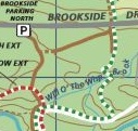 Dogwood hill has ample parking, but only had connections to the trail system to the west. The Dogwood hill connector headed north towards the sledding hill. It also provided access to two small parking areas on Brookside drive.